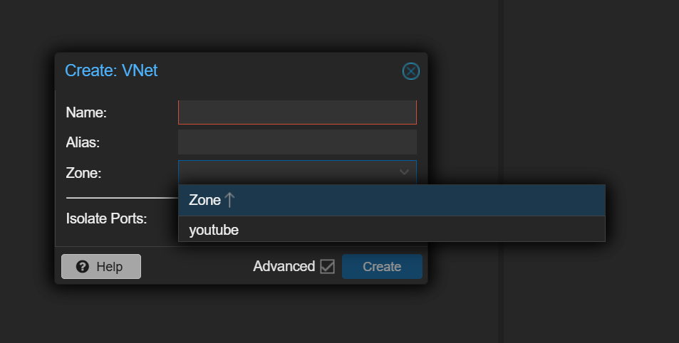 В меню Datacenter кликаете на вкладку SDN. Там вы видите список сетей, которые существуют на данный момент. Количество сетей будет зависеть от количество нод. В моем случае будет только одна локальная сеть.
