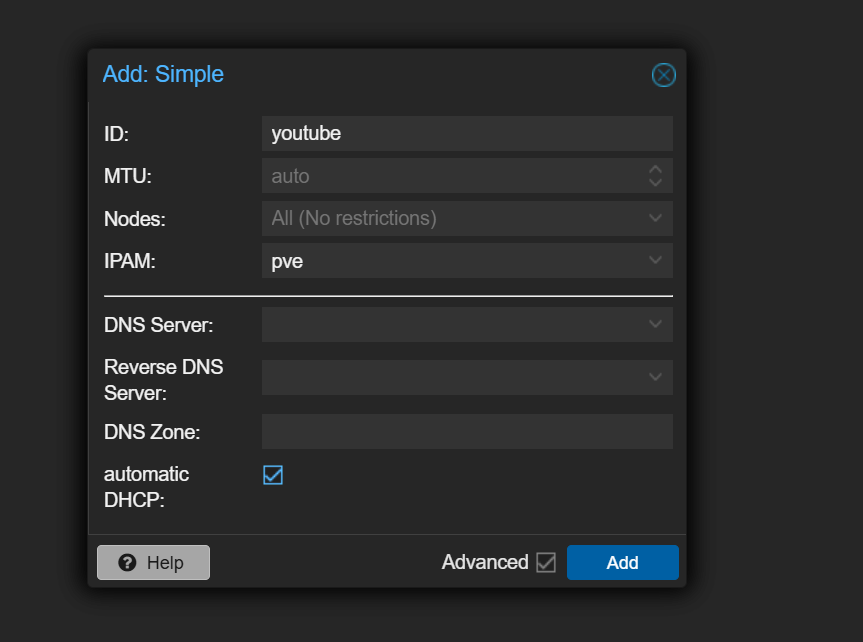 В качестве ID я указываю название youtube. Значения MTU я оставлю по умолчанию. Обратите внимание, иногда регионы рапортуют, что с дефолтным значение MTU которое равняется 1500 могут быть проблемы. Можете попробовать значение 1460 как вариант. В этом же меню в качестве DHCP я выбираю автонастройку. Жмем add.